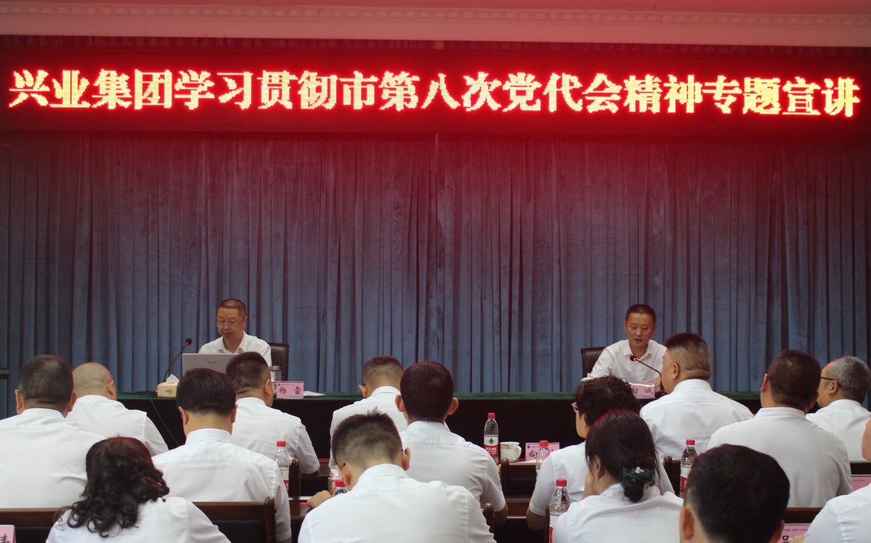 ? ? 9月29日,市國資委黨委書記楊雷到遂寧興業(yè)集團(tuán)為全體干部職工宣講市第八次黨代會(huì)精神。會(huì)議由集團(tuán)黨委副書記、總經(jīng)理向誠主持。集團(tuán)在家高管、本部全體干部職工,直屬企業(yè)領(lǐng)導(dǎo)班子成員及黨群工作負(fù)責(zé)同志現(xiàn)場(chǎng)聆聽宣講。